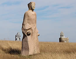 Statuen bretonischer Heiliger unter der spirituellen Weite